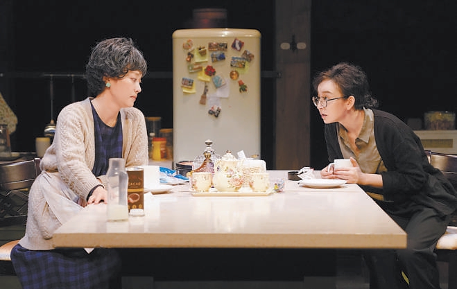 “《晚安,媽媽》沒有大的戲劇沖突,所有的矛盾都來自真實的生活,通過合情合理的人物關系和環(huán)環(huán)相扣的對話,去撥開日常生活之下翻滾的心。”唐燁形容,這是一部沒有借助所謂的“手段”的作品,100分鐘的演出真誠動人,靠的是扎實的舞臺實景和兩位演員牽動肺腑的表演——冰箱里塞滿食物,杯子盛著冒白氣的熱巧克力,水龍頭能擰出自來水,沒有刻意的音樂和效果,整座舞臺如同真實生活的切面。演員需要在“做家務”的同時進行快節(jié)奏、高密度的對話,“手上不能停,但也不能攪戲,比如母女倆換沙發(fā)套的那一段,我們就練了很久很久?!碧茻钫f。