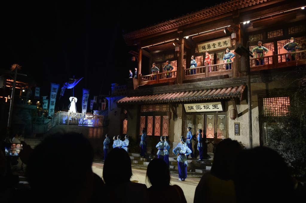 位于河南省中牟縣的建業(yè)電影小鎮(zhèn)以電影主題演藝為核心,打造集電影互動游樂、電影文化體驗、電影主題客棧、民俗和非遺體驗等內(nèi)容于一體的沉浸式文旅項目。夜晚時分,游人在小鎮(zhèn)中穿梭游覽,觀賞各類實景演出,體驗妙趣橫生的電影情境之旅。