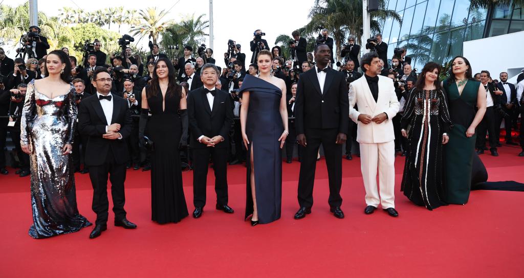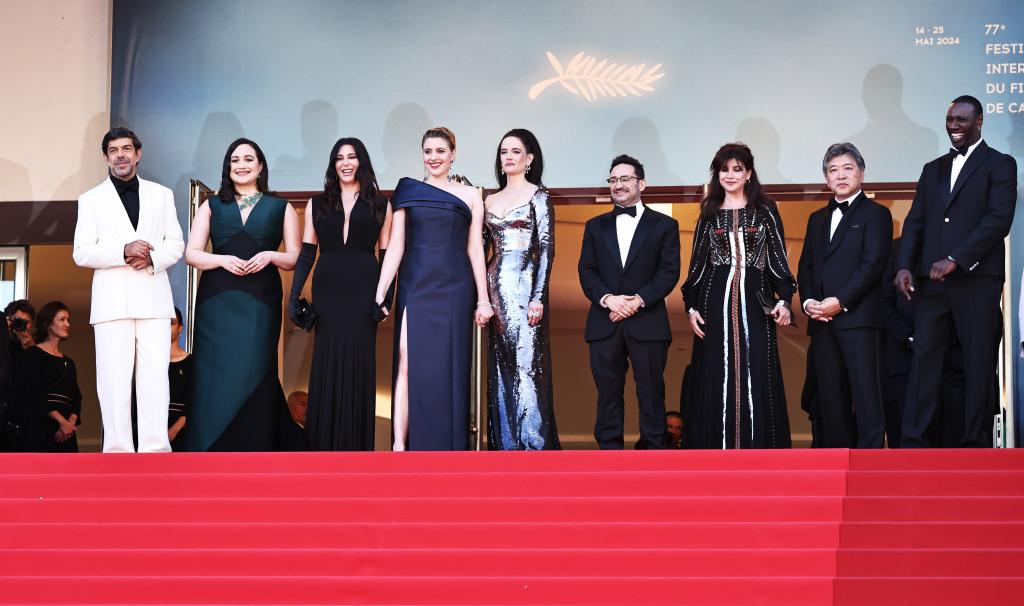 5月25日,在法國(guó)南部城市戛納舉行的第77屆戛納電影節(jié)上,主競(jìng)賽單元評(píng)委抵達(dá)閉幕式紅毯。新華社記者 高靜 攝