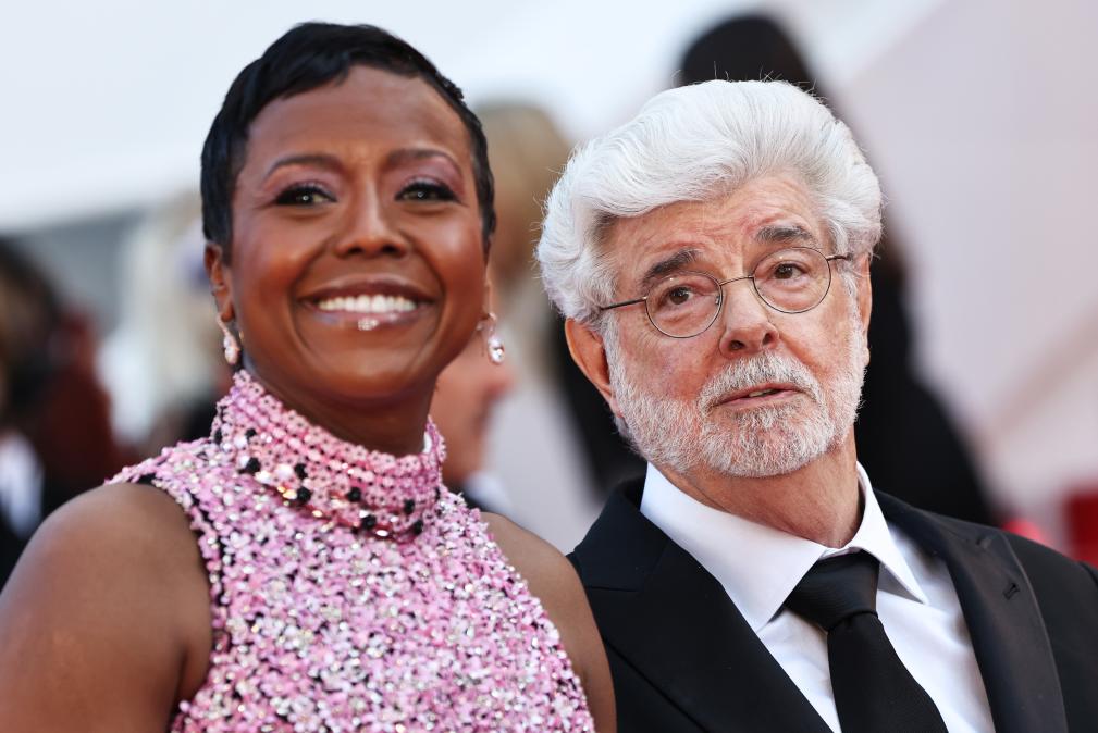 5月25日,在法國(guó)南部城市戛納舉行的第77屆戛納電影節(jié)上,美國(guó)導(dǎo)演、編劇、制片人喬治·盧卡斯(右)抵達(dá)閉幕式紅毯。新華社記者 高靜 攝