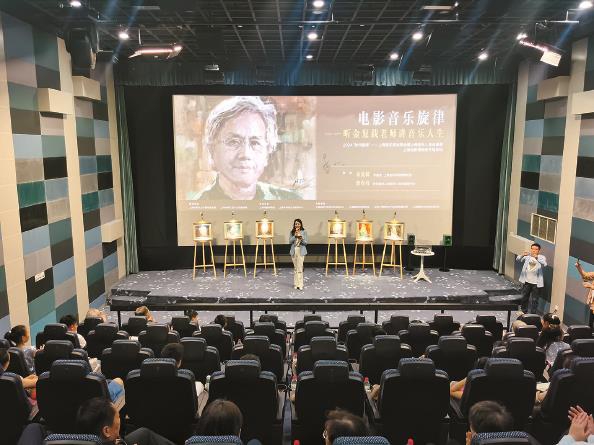 走進電影博物館的藝術(shù)影廳,可以看到大銀幕前放置了六幅油畫肖像,分別是賀綠汀、黃準(zhǔn)、呂其明、陳傳熙、湯沐海等與電影音樂創(chuàng)作密不可分的作曲家——這些肖像正出自賀壽昌之手。今年82歲的金復(fù)載自25歲起從上海音樂學(xué)院畢業(yè)之后,就進入動畫片和電影配樂領(lǐng)域。而他退休后,還一腳踏入了如今十分興盛的音樂劇,成為上海音樂學(xué)院音樂劇系的首任系主任。因此,他的音樂生涯,始終是“時代旋律”。他見證了廣受大眾喜愛的電影、動畫、音樂劇音樂的發(fā)展歷程?,F(xiàn)場播放了央視為他拍攝的紀(jì)錄片,畫面上呈現(xiàn)了他的代表作——電影《紅河谷》、動畫片《哪吒鬧?!贰度齻€和尚》《雪孩子》,還有電視劇《濟公》里的“鞋兒破、帽兒破……”讓現(xiàn)場不同年齡的觀眾都回憶起各自的美好童年……