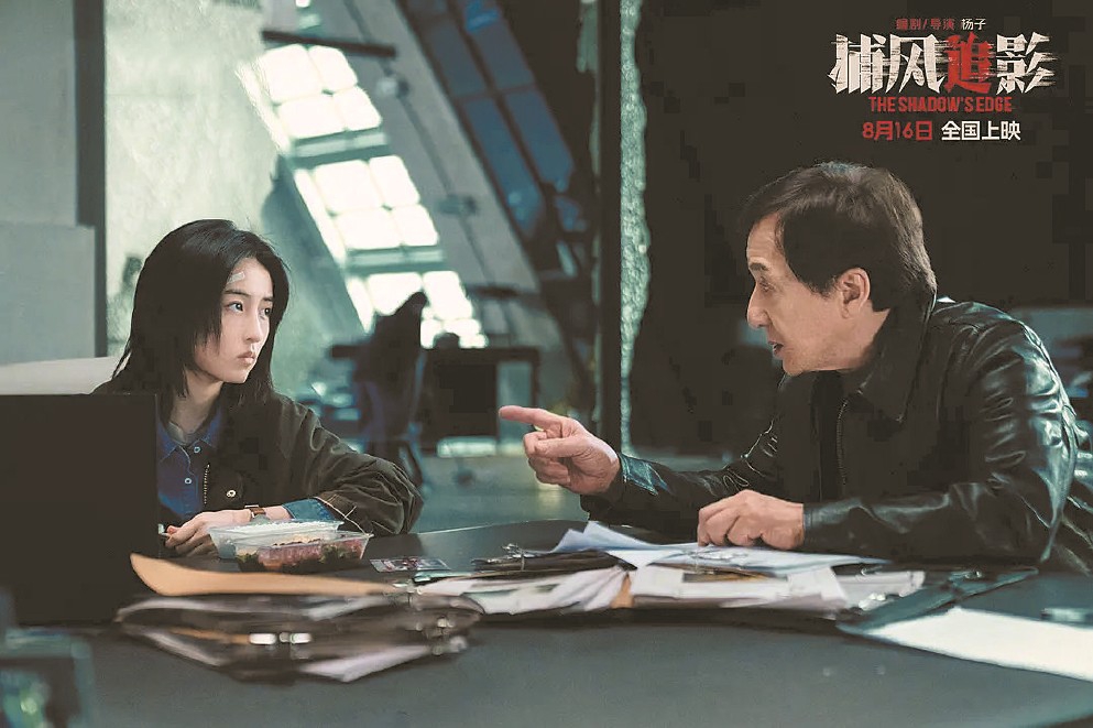 張子楓與成龍的對(duì)手戲被稱為“《成龍歷險(xiǎn)記》真人版”:“像極了變老后的龍叔帶著長(zhǎng)大的小玉破案”。圖為《捕風(fēng)追影》劇照。