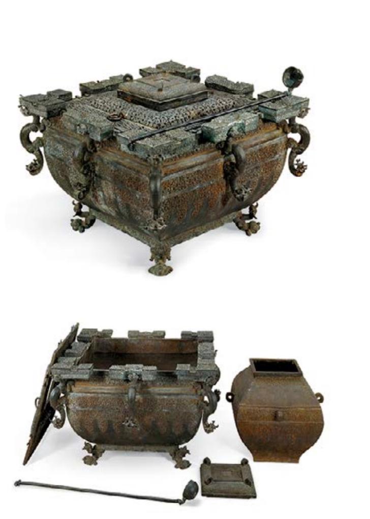 影片中用于冰酒的銅鑒缶正是出自于湖北省博物館館藏曾侯乙銅鑒缶,它由外部的鑒、鑒內(nèi)置的缶組成,是中國最早的“冰箱”。在鑒的內(nèi)部放上缶,中間的空隙放上冰塊,可在祭祀和宴饗時(shí)冰鎮(zhèn)酒。“以古為鑒”“擊缶而歌”等成語亦由此衍生而來。