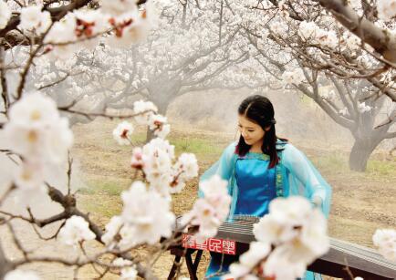 在近日舉辦的繁峙趙莊杏花節(jié)上,一名身穿古裝的女子正在杏花爛漫的杏園里進(jìn)行古箏彈奏表演。近年來(lái),作為全國(guó)“一村一品”示范村的繁峙縣趙莊村,種植杏樹面積達(dá)5200畝。去年,全村出售白水大杏樹苗40 萬(wàn)株、白水大杏150 萬(wàn)公斤,總收入達(dá)800 多萬(wàn)元,人均年收入達(dá)到13000 元。(喬偉 攝)