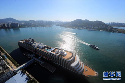 1月31日,“威斯特丹號”??吭谌齺嗻P凰島國際郵輪港。 新華社發(fā)(沙曉峰 攝)