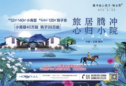 騰沖的小院子,是實力文旅繼大理的小院子之后書寫的嶄新篇章。正如其名,騰沖的小院子坐落于騰沖市西山壩新區(qū),倚山觀云海,俯瞰全城繁華風(fēng)景。小院子規(guī)劃共約700余畝,擁有極具騰越風(fēng)情的合院、獨院、洋房、聯(lián)排、小高層等產(chǎn)品。
