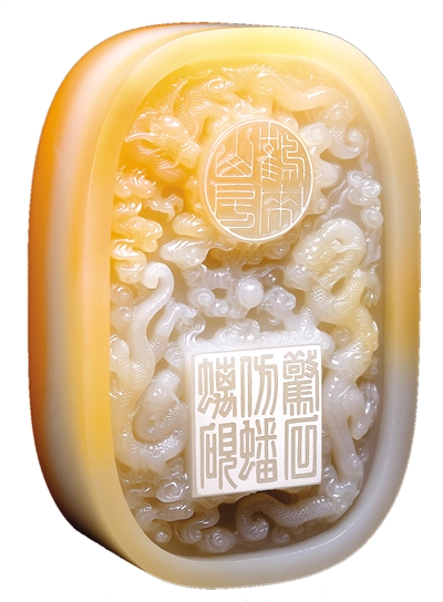 壽山石是一種以主產(chǎn)地命名的名貴印石。位于福建省福州市晉安區(qū)的壽山村,自古就以出產(chǎn)好石材著稱。元、明之際,壽山石雕刻印章開始興起。壽山石章鈕飾題材十分廣泛,包括動物、人物、花果等,雕刻技法有圓雕、浮雕、淺浮雕以及陰刻等。