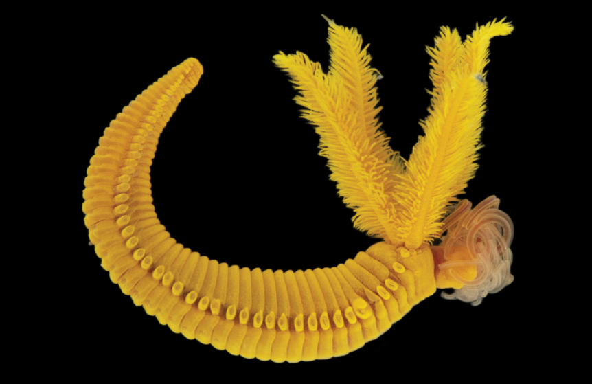 在太平洋海底2000米深處,滾燙的熱液從海底噴涌而出,溫度高達(dá)400攝氏度,周圍充滿了足以毒死大多數(shù)生物的硫化氫和重金屬。然而,就在這個(gè)被科學(xué)家稱為“地球上最極端的化學(xué)地獄”的地方,一種鮮黃色的蠕蟲——赫斯帕拉爾文氏蠕蟲(Paralvinella hessleri)卻活得有滋有味。不禁讓人想問(wèn):它們憑什么可以在這樣的環(huán)境中生存下來(lái)?