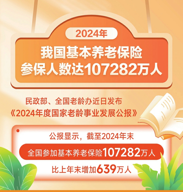 2024年 我國(guó)基本養(yǎng)老保險(xiǎn)參保人數(shù)達(dá)107282萬(wàn)人