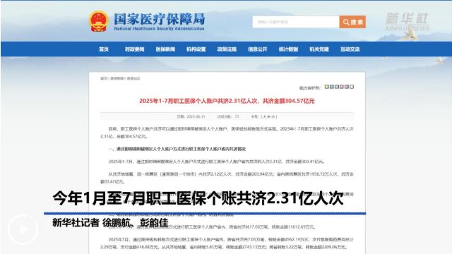 【簡(jiǎn)介】記者8月31日從國(guó)家醫(yī)保局獲悉,2025年1月至7月職工醫(yī)保個(gè)人賬戶共濟(jì)人次2.31億,金額304.57億元。