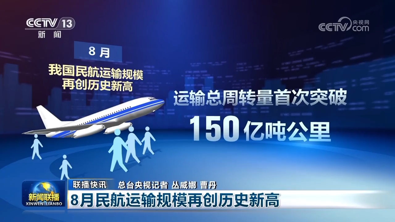 8月,我國(guó)民航運(yùn)輸規(guī)模再創(chuàng)歷史新高,運(yùn)輸總周轉(zhuǎn)量首次突破150億噸公里,旅客運(yùn)輸量達(dá)7536.4萬(wàn)人次,國(guó)際航線旅客運(yùn)輸量同比增長(zhǎng)15.3%。