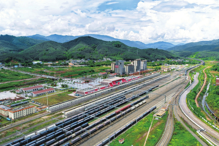 9月21日,中老鐵路上的貨運(yùn)列車在磨憨站通過。記者獲悉,中老鐵路開通運(yùn)營(yíng)以來,截至9月19日,全線累計(jì)開行貨物列車突破6萬(wàn)列,貨運(yùn)量超6760萬(wàn)噸,其中跨境貨物運(yùn)輸突破1500萬(wàn)噸。