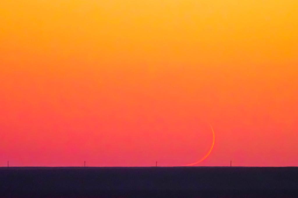 2021年9月8日,在新疆哈密大海道拍攝的蛾眉月。(王俊峰 攝)