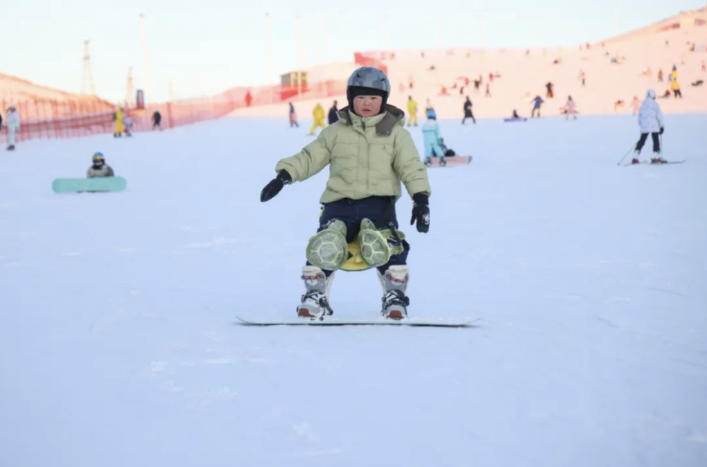 一名小學(xué)生在阿勒泰將軍山國際滑雪度假區(qū)滑雪。新華社發(fā)(明庭俊杰攝)