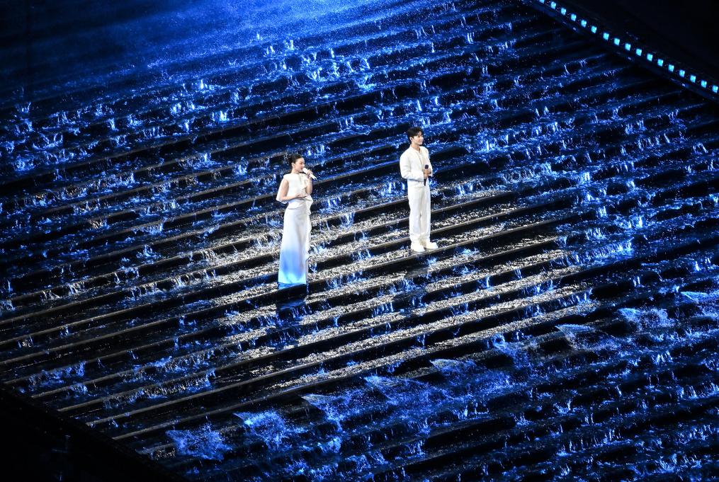 新華社廣州11月10日電(記者王浩明、趙紫羽、田宇)9日晚,廣東奧林匹克體育中心,十五運(yùn)會的開幕式在這里舉行,當(dāng)十五運(yùn)會主火炬塔“天海之冠”被三地健兒共同點(diǎn)亮那一剎,燈火輝煌,掌聲雷動。 燈光忽地變暗,一滴水落在水面的聲音入耳,緊接著一段柔美的前奏,隨后是清澈如水的歌聲:“一滴水,一滴一滴一滴一滴的水,是咸的,那是感動的眼淚……”