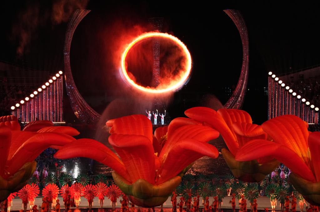 11月9日,歌手周深(右)和單依純在開幕式現(xiàn)場演唱。新華社記者 李鑫 攝 “這首歌一定會在大型綜合體育賽事的歷史上留下濃墨重彩的一筆。”十五運(yùn)會廣州賽區(qū)執(zhí)委會副主任、副秘書長朱小燚說。 此前不少大型體育賽事的開幕式主題曲,都在后來成為被久久傳唱的經(jīng)典曲目。比如,首爾(漢城)奧運(yùn)會的《手拉手》、北京亞運(yùn)會的《亞洲雄風(fēng)》、北京奧運(yùn)會的《我和你》。 五環(huán)旗下,五線譜上的音符為何能夠閃閃發(fā)光? 這些主題曲的創(chuàng)作,往往基于人類的共通情感,讓不同文化背景的人產(chǎn)生共振。首爾(漢城)奧運(yùn)會的主題曲,在一個動蕩的世界,以“手拉手”傳遞人類共通的團(tuán)結(jié)愿景。2008年北京奧運(yùn)會,用“我和你”傳遞世界大同的溫情,沒有激烈旋律卻憑樸素的情感打動全球觀眾。