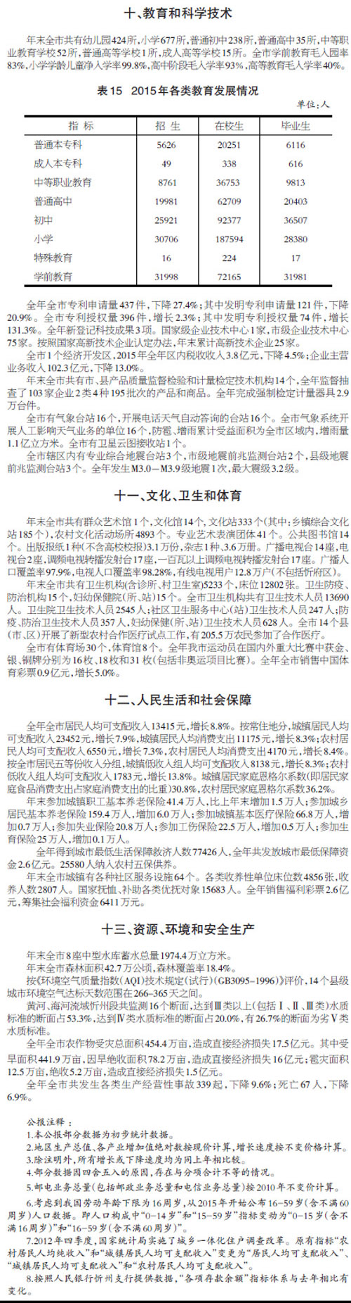 忻州市2015年國民經(jīng)濟(jì)和社會(huì)發(fā)展統(tǒng)計(jì)公報(bào)