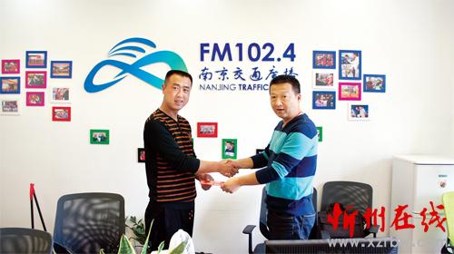 4月7日,在南京交通廣播“智勇在線(xiàn)”節(jié)目組,來(lái)自忻州市定襄縣的智杰(左)和主持人智勇在一起,并受到了該媒體的贊譽(yù)與獎(jiǎng)勵(lì)(劉捷 攝)
