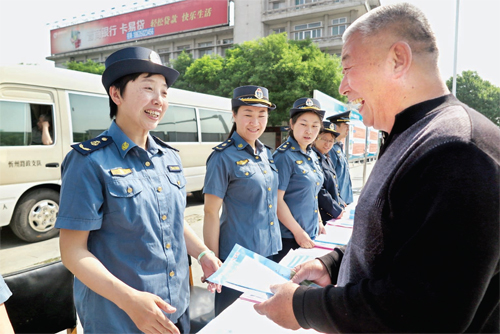 宣傳月活動(dòng)期間,忻州公路分局共出動(dòng)宣傳人員3360 余人次,出動(dòng)宣傳車124 輛次,在所轄各公路超限檢測(cè)站、路政大隊(duì)、服務(wù)大廳、國省干線公路沿線懸掛布幅標(biāo)語140 幅,發(fā)放各類宣傳資料160000余份。各路政大隊(duì)、檢測(cè)站每天播放《山西省公路條例》、《公路安全保護(hù)條例》的錄音宣傳資料,并在當(dāng)?shù)仉娨暸_(tái)飛播宣傳口號(hào)。據(jù)了解,忻州公路分局下一步將在忻州路政服務(wù)大廳展開更有針對(duì)性的宣傳活動(dòng),進(jìn)一步增強(qiáng)廣大人民群眾愛路護(hù)橋的意識(shí),有效預(yù)防超限運(yùn)輸違法行為發(fā)生,為創(chuàng)造良好的路政執(zhí)法環(huán)境提供有效保證。圖為活動(dòng)現(xiàn)場(chǎng)(王菲)