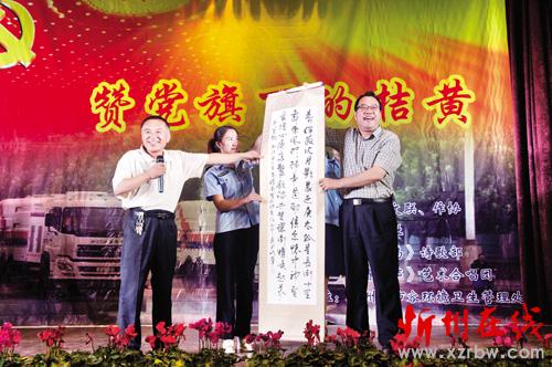 詩(shī)朗誦《我代表這個(gè)城市向你敬禮》 本報(bào)訊 7月3日晚8時(shí),忻府區(qū)文聯(lián)、忻府區(qū)作家協(xié)會(huì)和遺山詩(shī)社在忻州市住建局禮堂共同舉辦了一場(chǎng)大型詩(shī)歌吟誦演唱會(huì),用詩(shī)的語(yǔ)言、歌的韻律抒發(fā)了對(duì)黨的祝福和對(duì)環(huán)衛(wèi)工人的贊美。7月1日是黨的生日,在此之際,他們用詩(shī)歌表達(dá)對(duì)黨的熱愛(ài),也表達(dá)對(duì)在黨旗下默默付出的勞動(dòng)者們的敬意。 走進(jìn)活動(dòng)禮堂,一抹抹亮眼的桔黃映入眼簾,身著工服的環(huán)衛(wèi)工人們整齊地坐在座位上,三三兩兩小聲交談著,言語(yǔ)中透露著對(duì)詩(shī)歌吟誦演唱會(huì)的期待。此次“贊黨旗下的桔黃”詩(shī)歌吟誦演唱會(huì),通過(guò)詩(shī)朗誦、唱紅歌等多種形式呈現(xiàn),獨(dú)唱《東方紅》、合誦《中國(guó)夢(mèng)》展現(xiàn)了對(duì)黨和祖國(guó)深情,《我代表這個(gè)城市向你敬禮》、《致清潔工》等詩(shī)朗誦用樸實(shí)的語(yǔ)言還原了環(huán)衛(wèi)工人真實(shí)的工作場(chǎng)景,用一件件小事彰顯他們的偉大。遺山詩(shī)社社長(zhǎng)楊峻峰還將所作的關(guān)于環(huán)衛(wèi)工人的詩(shī)歌寫(xiě)成書(shū)法作品,現(xiàn)場(chǎng)送給環(huán)衛(wèi)工人代表,用文字、用書(shū)法傳情?,F(xiàn)場(chǎng)的一位觀眾、環(huán)衛(wèi)三所的趙艷平師傅告訴記者,“我是第一次參加這樣的詩(shī)歌聯(lián)誼會(huì),不僅感受到社會(huì)對(duì)環(huán)衛(wèi)工人的理解和尊重,對(duì)我來(lái)說(shuō)也是一次藝術(shù)方面的熏陶,挺有觸動(dòng)的。” 我市市容環(huán)境衛(wèi)生管理處,是擔(dān)負(fù)城區(qū)環(huán)境衛(wèi)生管理和清潔的主要單位,幾十年來(lái)幾代環(huán)衛(wèi)工人為維護(hù)優(yōu)美潔凈的生活環(huán)境奉獻(xiàn)著自己的青春。在環(huán)衛(wèi)隊(duì)伍里,夫妻環(huán)衛(wèi)工、父子環(huán)衛(wèi)工、環(huán)衛(wèi)世家比比皆是,他們真正做到了寧臟我一個(gè)、潔凈千萬(wàn)家。隨著一大批有知識(shí)、有文化的年輕人加入環(huán)衛(wèi)隊(duì)伍,在他們的共同努力下,相信我們的城市會(huì)更整潔舒適。(許凈 魯明強(qiáng) 韓麗萍 攝影報(bào)道)