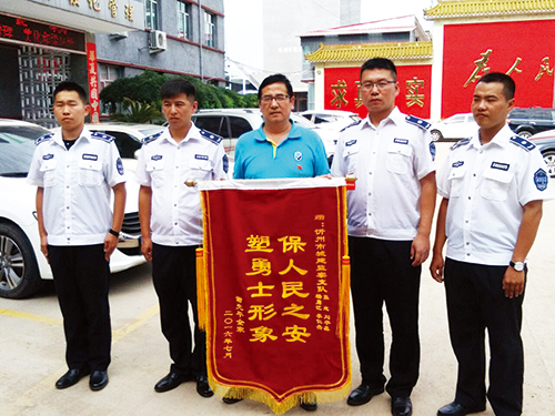 “謝謝你們的幫助,讓我被搶的財(cái)物失而復(fù)得,謝謝、謝謝……”7月13日下午,家住我市城區(qū)學(xué)府街的謝先生連聲感謝,將一面寫有“保人民之安塑勇士形象”字樣的錦旗送到了市城建支隊(duì)協(xié)管大隊(duì)城管隊(duì)員張志、楊勇江、劉宇鑫、李仁杰手中,表達(dá)他對(duì)市城建支隊(duì)城管隊(duì)員們見(jiàn)義勇為、熱心為民的感激之情。