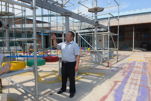 陳銀秀向記者介紹新制造的游樂設備
