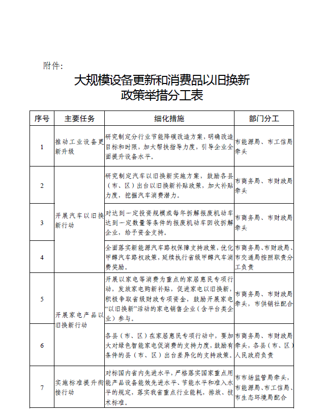 附件:大規(guī)模設(shè)備更新和消費(fèi)品以舊換新政策舉措分工表