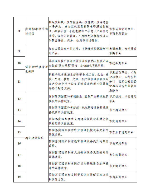 忻州市推動(dòng)大規(guī)模設(shè)備更新和消費(fèi)品以舊換新工作方案