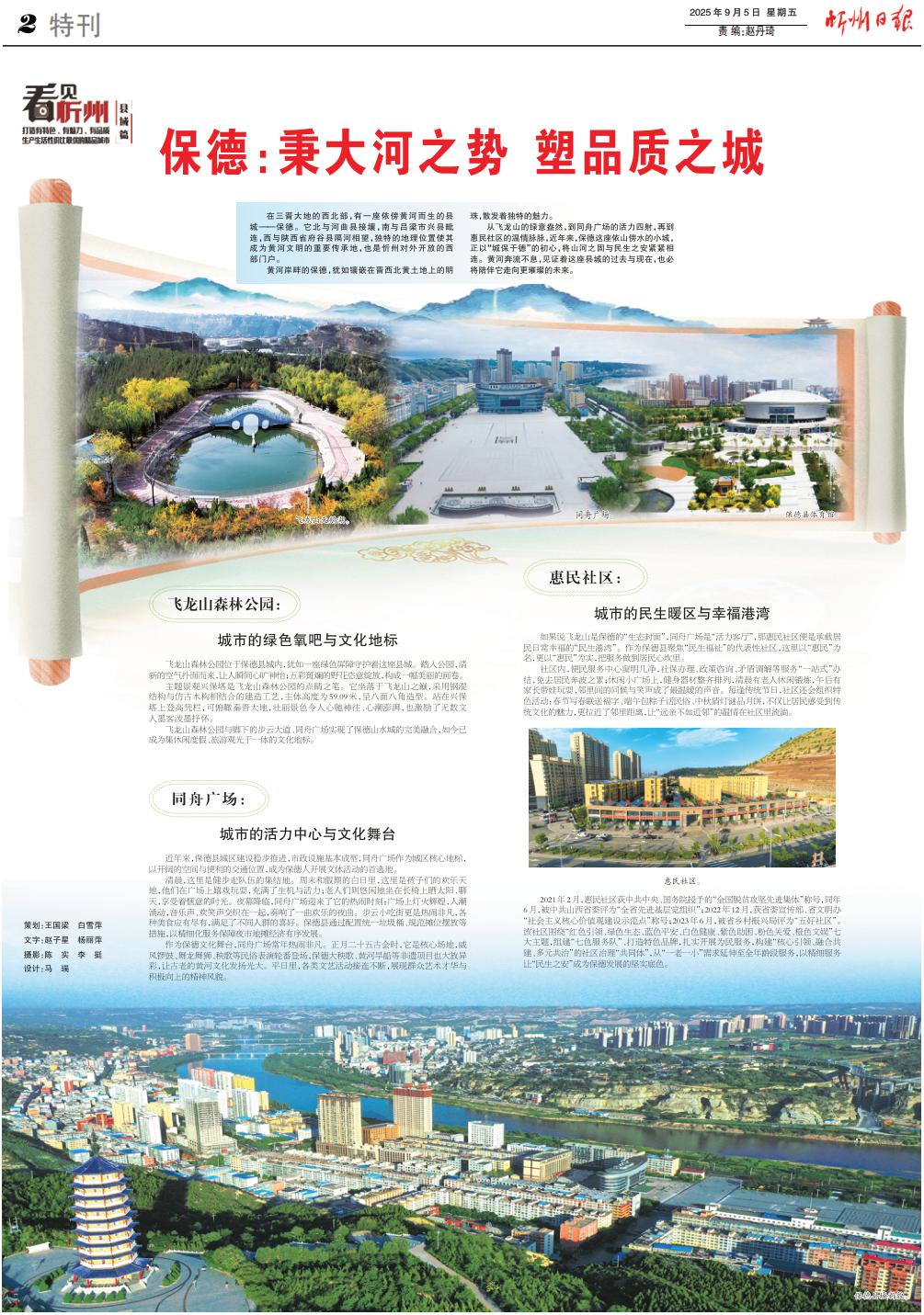 在三晉大地的西北部,有一座依傍黃河而生的縣城——保德。它北與河曲縣接壤,南與呂梁市興縣毗連,西與陜西省府谷縣隔河相望,獨特的地理位置使其成為黃河文明的重要傳承地,也是忻州對外開放的西部門戶。 黃河岸畔的保德,猶如鑲嵌在晉西北黃土地上的明珠,散發(fā)著獨特的魅力。 從飛龍山的綠意盎然,到同舟廣場的活力四射,再到惠民社區(qū)的溫情脈脈,近年來,保德這座依山傍水的小城,正以“城保于德”的初心,將山河之固與民生之安緊緊相連。黃河奔流不息,見證著這座縣城的過去與現(xiàn)在,也必將陪伴它走向更璀璨的未來。 飛龍山森林公園: 城市的綠色氧吧與文化地標 飛龍山森林公園位于保德縣城內(nèi),猶如一座綠色屏障守護著這座縣城。踏入公園,清新的空氣撲面而來,讓人瞬間心曠神怡;五彩斑斕的野花恣意綻放,構(gòu)成一幅美麗的畫卷。 主題景觀興保塔是飛龍山森林公園的點睛之筆。它坐落于飛龍山之巔,采用鋼混結(jié)構(gòu)與仿古木構(gòu)相結(jié)合的建造工藝,主體高度為59.09米,呈八面八角造型。站在興保塔上登高憑欄,可俯瞰秦晉大地,壯麗景色令人心馳神往、心潮澎湃,也激勵了無數(shù)文人墨客潑墨抒懷。 飛龍山森林公園與腳下的步云大道、同舟廣場實現(xiàn)了保德山水城的完美融合,如今已成為集休閑度假、旅游觀光于一體的文化地標。 同舟廣場: 城市的活力中心與文化舞臺 近年來,保德縣城區(qū)建設(shè)穩(wěn)步推進,市政設(shè)施基本成型,同舟廣場作為城區(qū)核心地標,以開闊的空間與便利的交通位置,成為保德人開展文體活動的首選地。 清晨,這里是健步走隊伍的集結(jié)地。周末和假期的白日里,這里是孩子們的歡樂天地,他們在廣場上嬉戲玩耍,充滿了生機與活力;老人們則悠閑地坐在長椅上曬太陽、聊天,享受著愜意的時光。夜幕降臨,同舟廣場迎來了它的熱鬧時刻:廣場上燈火輝煌,人潮涌動,音樂聲、歡笑聲交織在一起,奏響了一曲歡樂的夜曲。步云小吃街更是熱鬧非凡,各種美食應(yīng)有盡有,滿足了不同人群的喜好。保德縣通過配置統(tǒng)一垃圾桶、規(guī)范攤位擺放等措施,以精細化服務(wù)保障夜市地攤經(jīng)濟有序發(fā)展。 作為保德文化舞臺,同舟廣場常年熱鬧非凡。正月二十五古會時,它是核心場地,威風(fēng)鑼鼓、舞龍舞獅、秧歌等民俗表演輪番登場,保德大秧歌、黃河旱船等非遺項目也大放異彩,讓古老的黃河文化發(fā)揚光大。平日里,各類文藝活動接連不斷,展現(xiàn)群眾藝術(shù)才華與積極向上的精神風(fēng)貌。