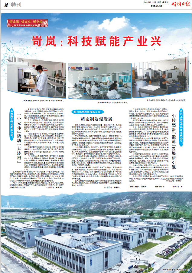 目前,公司在岢嵐縣投資0.6億元建設(shè)了新的年產(chǎn)100萬個傳感器生產(chǎn)線,未來將進一步提升產(chǎn)能和技術(shù)水平,助力區(qū)域經(jīng)濟轉(zhuǎn)型與新質(zhì)生產(chǎn)力發(fā)展。(康馨月 張志遠)