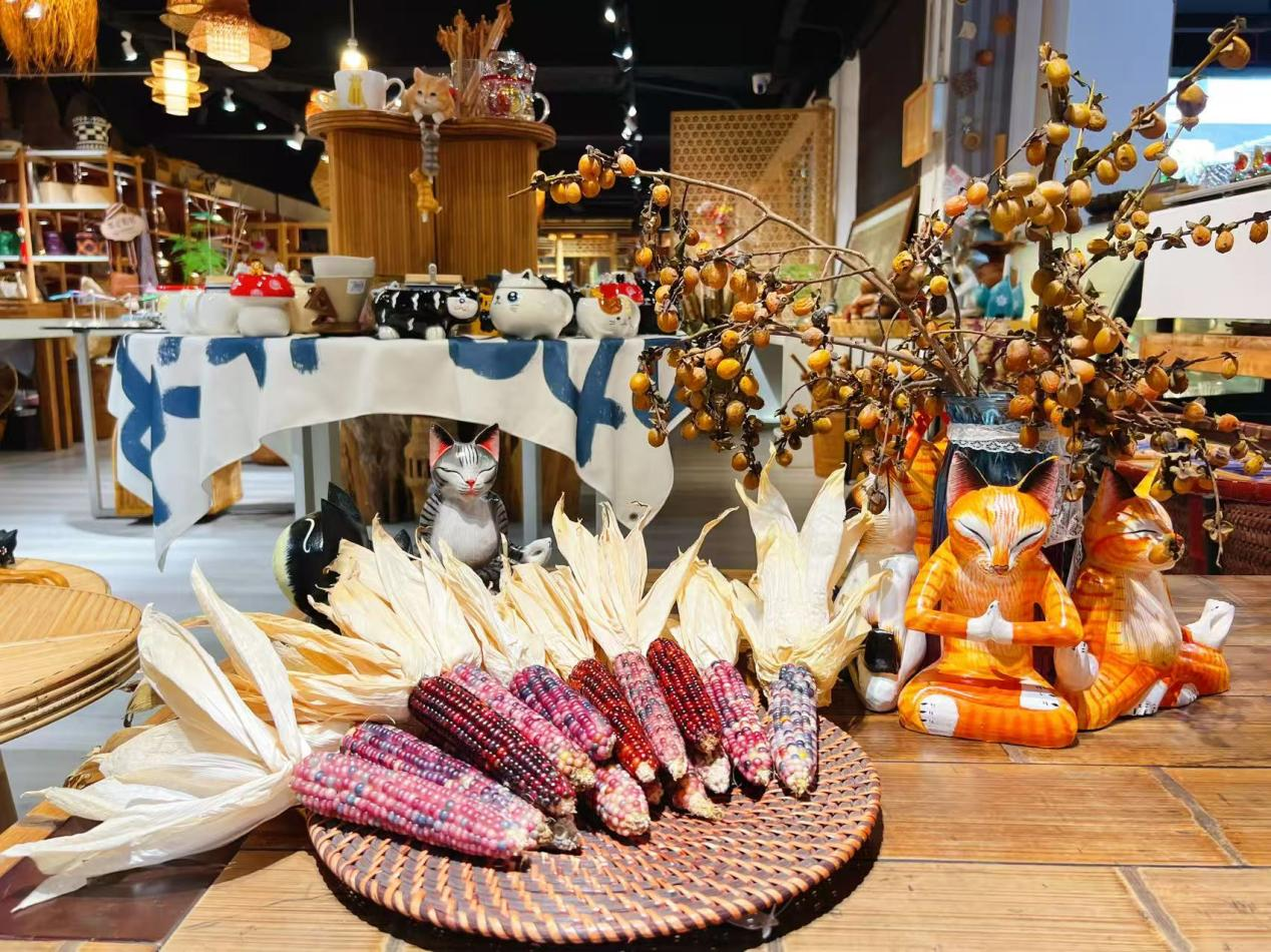 經(jīng)自然晾曬、人工精選、手工創(chuàng)意后,高顏值的玉米迎來(lái)了“七十二變”:配上木質(zhì)底座成為文玩擺件,單粒打孔輔以云南銀飾變成手鏈、鑰匙扣,掛飾、裝飾畫等。