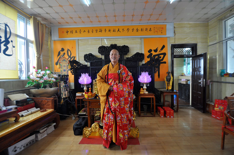 他常年居于海拔高達2996米的五臺山東臺頂望海寺,每當旭日初升,霞光萬道,靜謐的望海寺完全浸于一片云山霧海之中,配上渾厚的晨鐘聲,愈發(fā)顯得莊嚴肅穆。