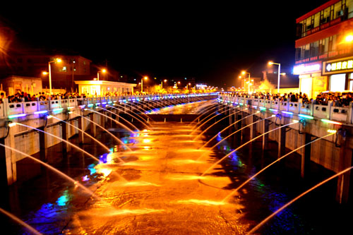 10月1日,國(guó)慶節(jié),代縣縣城關(guān)溝河景觀工程正式竣工蓄水。河道中,兩道鋼閘壩內(nèi),清清的河水碧波蕩漾,河道兩岸是兩條6米寬的景觀大道。道路內(nèi)側(cè),路燈成行,綠樹(shù)成蔭,風(fēng)光如畫。伴隨著優(yōu)美的樂(lè)曲,河道兩側(cè)的音樂(lè)噴泉噴珠吐玉,不斷變化著造型,在金色的陽(yáng)光下不時(shí)閃現(xiàn)出道道彩虹。到了夜間,音樂(lè)噴泉在明亮的燈光映襯下,更是五彩繽紛,赤橙黃綠青藍(lán)紫,猶如彩練當(dāng)空舞。成為歷史文化名城一道亮麗的風(fēng)景。