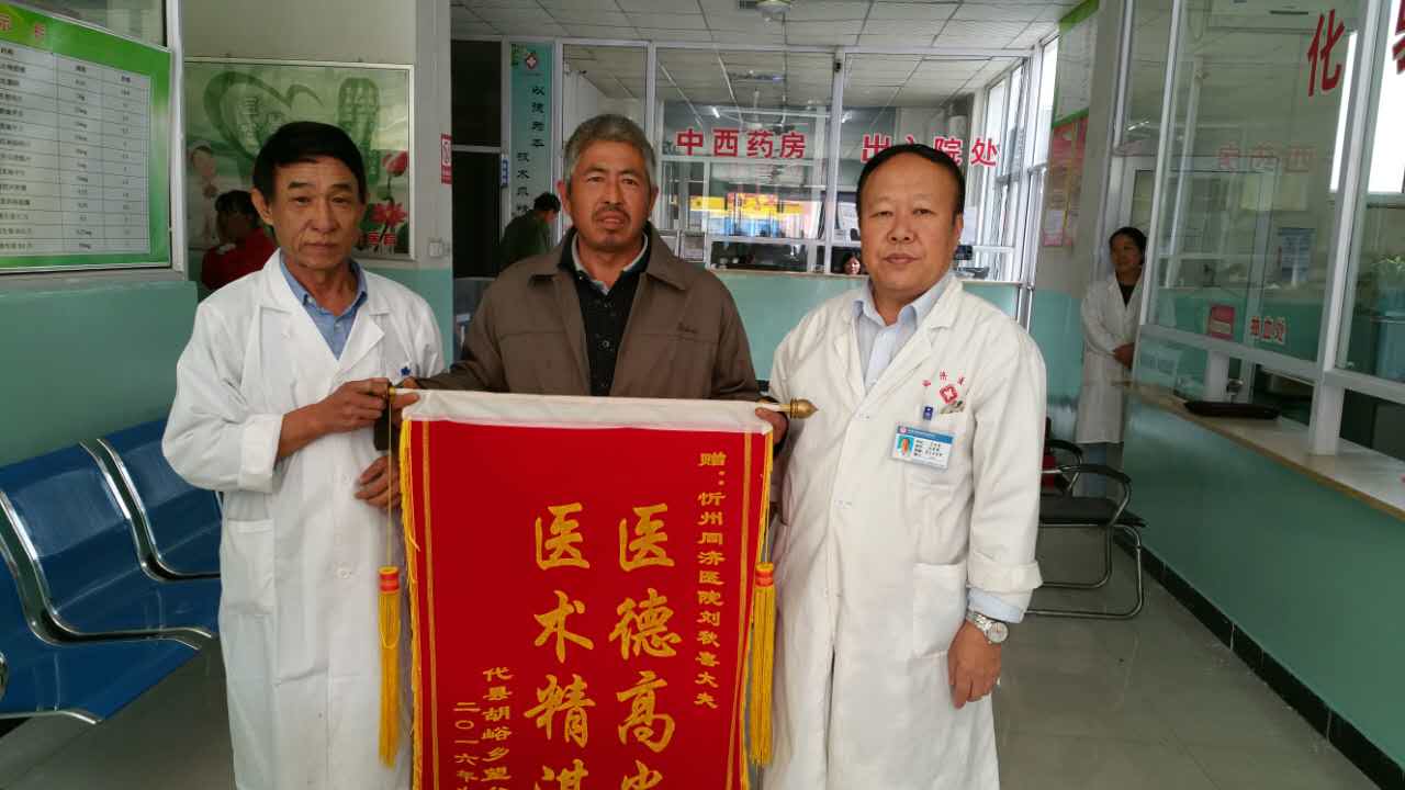 “謝謝您!張大夫,我現(xiàn)在精神好多了,睡眠也好了,吃飯也有胃口了……真是不知道怎樣感謝您才好。”10月8日,位于忻州市光明西街的同濟醫(yī)院辦公室,高老先生夫婦握著張大夫的手激動地說。其妻子郝女士將早已準備好的一面“服務熱情,醫(yī)術精湛”的錦旗送到張成喜大夫手中。同樣來自代縣胡峪鄉(xiāng)的賈先生也將一面寫有“醫(yī)德高尚,醫(yī)術精湛”的錦旗送到了該院寧院長手中。