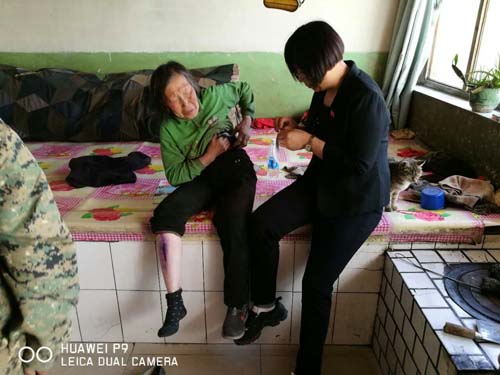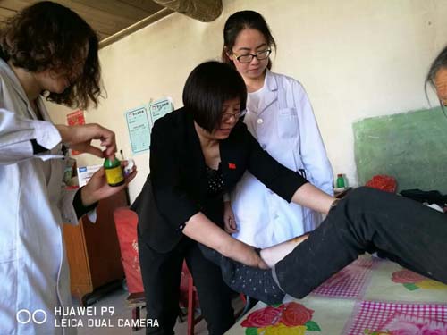 5月16日,忻州市衛(wèi)計(jì)委副主任楊春枝帶著黨支部部分黨員和忻州市中醫(yī)院的醫(yī)護(hù)人員再次趕赴到扶貧點(diǎn)寧武縣涔山鄉(xiāng)漚泥灣村,一進(jìn)村她(他)們連口水也沒有來得及喝,就安排中醫(yī)院醫(yī)護(hù)人員給村民們進(jìn)行體檢,楊主任和支部黨員就組織村委在村的6名黨員干部召開維護(hù)核心見諸行動專題黨課,她(他)們共同重溫黨章,面對黨旗舉手宣誓,楊主任親自上臺主講了一堂生動的黨課。隨后,她(他)們再次看望了貧困戶,在幫扶聯(lián)系貧困戶張存花家中,楊春枝主任從包里掏出自費(fèi)購買的膏藥,并親手扶起衣服給老人貼在患處?!澳銈兇罄线h(yuǎn)的每次都來看望我,上次我說腰疼,這次就給我?guī)砹烁嗨?,還親手給我貼上,不知道該怎樣感謝呀,這閨女就是比親閨女都親……”寧武縣涔山鄉(xiāng)漚泥灣村80歲的殘疾貧困戶張存花緊緊拉著扶貧干部忻州市衛(wèi)計(jì)委副主任楊春枝的手,激動地久久不肯松開。(郝法林 米永平)