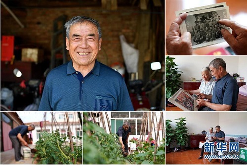 崔國平,男,1949年出生,山西省長治市武鄉(xiāng)縣監(jiān)漳村人。崔國平曾任監(jiān)漳村村支書,在職期間,帶領村民植樹造林,還修建了小學、中學,建起了橋梁及舞臺。崔國平說,村民們的生活比以前好太多了,原來住的都是土房,現(xiàn)在都是嶄新的磚瓦房。 左上:崔國平肖像;右上:崔國平拿著自己年輕時的照片;右中:崔國平(右)和妻子張翠英在看家人的合影;右下:崔國平(右)和妻子張翠英在翻看老照片;下中:崔國平在院子里忙碌;下左:崔國平在給自己種的菜澆水(拼版照片,6月11日攝)。 地處晉東南的山西省長治市,位于由太行山、太岳山環(huán)繞而成的上黨盆地中。在群山中、崖壁上,許多村莊自然條件惡劣,基礎設施落后,脫貧致富是大山深處人們的迫切心愿。 近年來,一場場脫貧攻堅戰(zhàn),在一個個深山村打響。政府全力探索脫貧路徑的同時,山區(qū)百姓因地制宜,靠自己的雙手和智慧走上致富路,交出了一份扎實的脫貧答卷。 記者在太行山、太岳山一路尋訪,記錄下多位70歲老人的生活。這些共和國的同齡人,親歷了山鄉(xiāng)的巨變,見證著長治山區(qū)脫貧攻堅偉大工程的一步步推進。 新華社記者 詹彥 攝