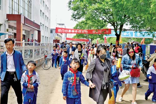 下學(xué)時(shí)段長(zhǎng)征路小學(xué)門前秩序井然