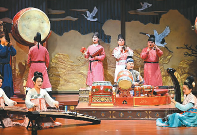 陜西省西安市大唐芙蓉園內(nèi)上演的舞臺劇《鼓》。新華社記者 劉 瀟攝