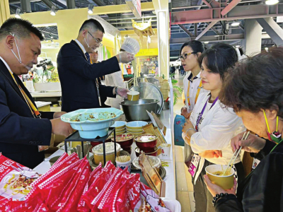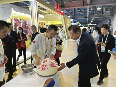 “此次參會(huì),山西會(huì)務(wù)集團(tuán)特別準(zhǔn)備了近年推陳出新、改良工藝的美食新品,希望以美食為載體,以文化為橋梁,讓更多人了解山西、走進(jìn)山西、愛上山西、投資山西?!蓖醮喝A說,“從連續(xù)幾天觀眾的反饋來看,山西刀削面、莜面栲栳栳最受大家歡迎,每天都有人排長隊(duì)品嘗,可以說供不應(yīng)求。此外,酥脆香甜的原平鍋盔、用石子炒制的石頭餅、精心烘焙的黃花餅、經(jīng)典小吃柳林碗托等都是觀眾愛吃的‘爆款’,再配合精彩的面食表演,來往客商連連點(diǎn)贊,直呼好吃好看?!?/p>