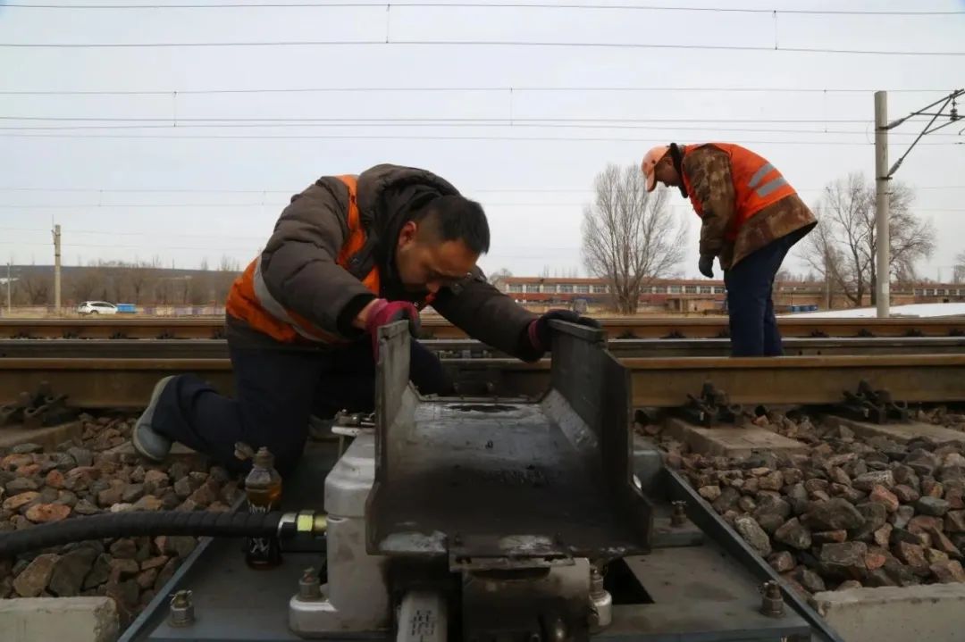 “放上木楔子,把道岔清理干凈!”為了保障春運期間道岔平穩(wěn)運行、列車安全暢通,鐵路信號工們加大道岔檢修力度,左手一把膩子鏟、右手一瓶機油,為道岔進(jìn)行清潔保養(yǎng)。
