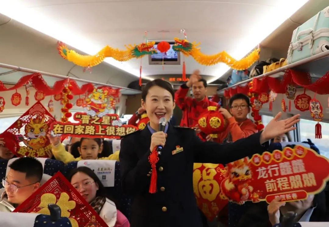 春運首日,太原客運段各次列車圍繞“龍行龘龘 旅程暖暖”主題,開展了精彩紛呈、喜慶熱鬧的列車文化活動。回家路上,我們不孤單。