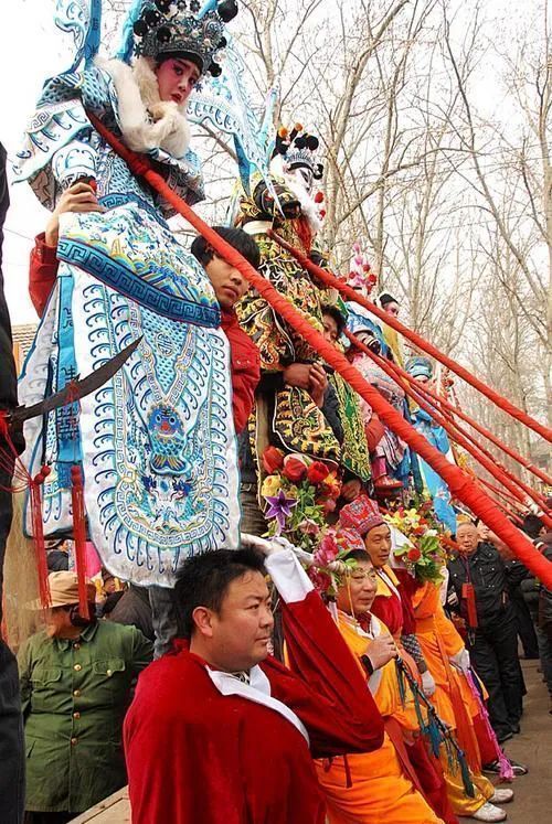 在有些地區(qū),“閣”甚至被搭成了一個“戲臺”般的樣子,除去人物還有布景,能使人一眼就看出“閣”上的故事。抬閣的壯漢也增加到八名一組,大家需要在行走中保持步調(diào)一致的同時(shí),大力顛簸,技術(shù)含量極高。這項(xiàng)表演至今都是各地春節(jié)社火表演中壓軸的重頭戲。