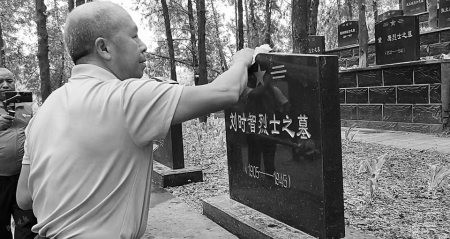 長子獨(dú)立團(tuán)團(tuán)長劉時智烈士的墓碑前,來自湖北省紅安縣華河鎮(zhèn)大學(xué)村的劉正業(yè)捧著從家鄉(xiāng)帶來的水和土,淚流滿面,反復(fù)說著“侄子不孝,現(xiàn)在才找到您,這么晚才來看您?!?/p>