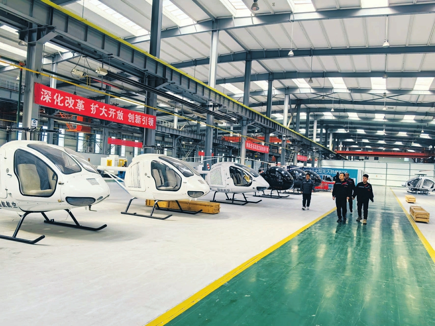 4月11日,山西喆航生產(chǎn)車間內(nèi),工作人員再次檢視準備交付的ZH281A直升機。