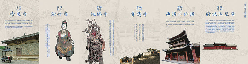 晉東南線:府城玉皇廟、西溪二仙廟、青蓮寺、鐵佛寺、法興寺、崇慶寺、觀音堂、龍門寺、原起寺、大云院、天臺庵等11個景點。