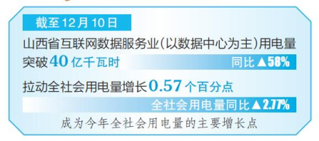 本報(bào)訊(記者杜鵑 通訊員張一龍)日前,國(guó)網(wǎng)山西省電力公司經(jīng)濟(jì)技術(shù)研究院發(fā)布了《山西省電力算力協(xié)同發(fā)展研究報(bào)告》,報(bào)告顯示,截至12月10日,山西省互聯(lián)網(wǎng)數(shù)據(jù)服務(wù)業(yè)(以數(shù)據(jù)中心為主)用電量突破40億千瓦時(shí),同比增長(zhǎng)58%,拉動(dòng)全社會(huì)用電量增長(zhǎng)0.57個(gè)百分點(diǎn)(全社會(huì)用電量同比增長(zhǎng)2.77%),成為今年全社會(huì)用電量的主要增長(zhǎng)點(diǎn)。