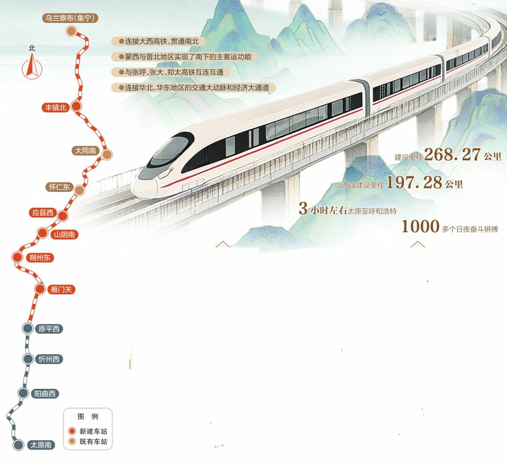 集大原鐵路鑄造了一個嶄新的鐵路“增強(qiáng)版”:連接大西高鐵,貫通南北,山西和內(nèi)蒙古兩地交流打通了快速通達(dá)重要通道,蒙西與晉北地區(qū)實(shí)現(xiàn)了南下的主客運(yùn)功能,烏蘭察布、大同和太原鐵路樞紐地位得以強(qiáng)化和提升。
