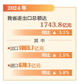 從貿(mào)易主體看,2024年,全省活躍企業(yè)持續(xù)增加,有進(jìn)出口實(shí)績(jī)的企業(yè)達(dá)2084家,同比增加3.7%,凈增加75家。