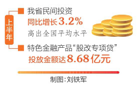 本報(bào)訊(記者晉帥妮 實(shí)習(xí)生秦一嘉)上半年我省民間投資同比增長(zhǎng)3.2%,高出全國(guó)平均水平,占固定資產(chǎn)投資比重達(dá)48.6%。特色金融產(chǎn)品“股改專(zhuān)項(xiàng)貸”投放金額達(dá)8.68億元,政策環(huán)境優(yōu)化與融資難題破解取得積極成效。這是7月28日記者從全省民營(yíng)經(jīng)濟(jì)系統(tǒng)工作座談會(huì)上獲悉的。