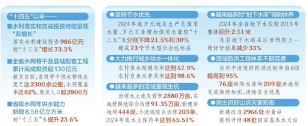 “十四五”以來(lái),我省全力開(kāi)展母親河復(fù)蘇、幸福河湖建設(shè)行動(dòng),在全國(guó)率先公布縣級(jí)以上母親河名錄,重點(diǎn)打造4條國(guó)家級(jí)、104條省級(jí)幸福河湖,優(yōu)先把各市縣母親河建設(shè)成為幸福河;“一泓清水入黃河”6大類(lèi)40項(xiàng)水利工程逐步建成達(dá)效,越來(lái)越多的河流恢復(fù)了生命。全省治理水土流失面積2880萬(wàn)畝,實(shí)施坡耕地綜合治理91.35萬(wàn)畝、新建淤地壩444座、小流域綜合治理203條,2024年底水土保持率達(dá)到65.51%,較“十三五”末提高3.13個(gè)百分點(diǎn),越來(lái)越多的流域重現(xiàn)了生機(jī)。2024年全省地下水位較2019年整體回升2.51米,淺層地下水超采區(qū)面積較上一輪評(píng)價(jià)結(jié)果減少33%,越來(lái)越多的“地下水庫(kù)”得到了休養(yǎng)。